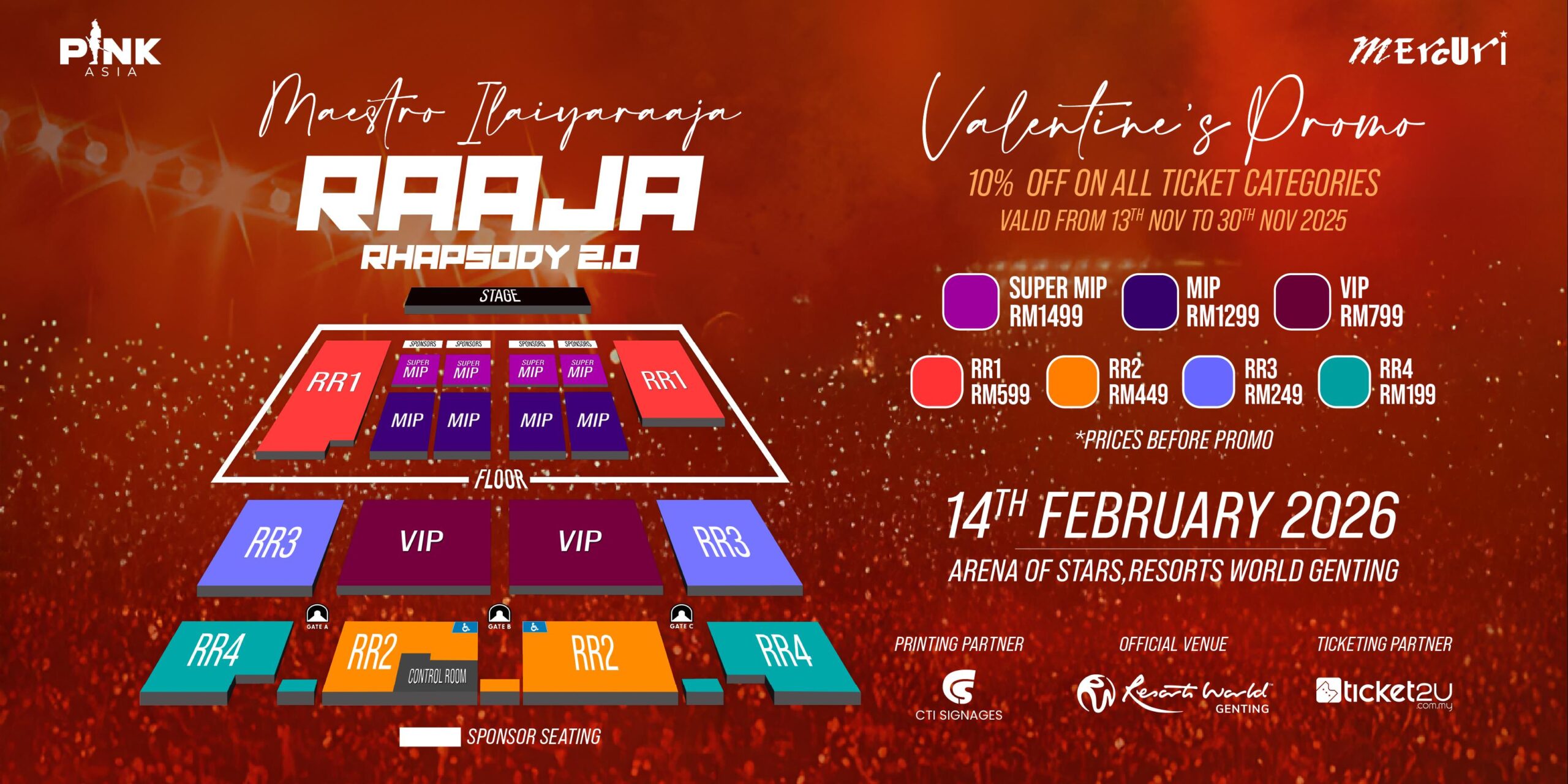 Ticket price or Raaja Rhapsody 2.0 Ilaiyaraaja Live in Malaysia Genting 2026 starting from RM 199 onwards, tickets can be purchased online at Ticket2U.