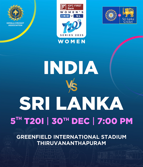 | Tue, 30 Dec 2025 | 19:00 | Sri Lanka Women Tour of India T20I Series 2025 | 5th T20I | Greenfield International Stadium, Thiruvananthapuram |