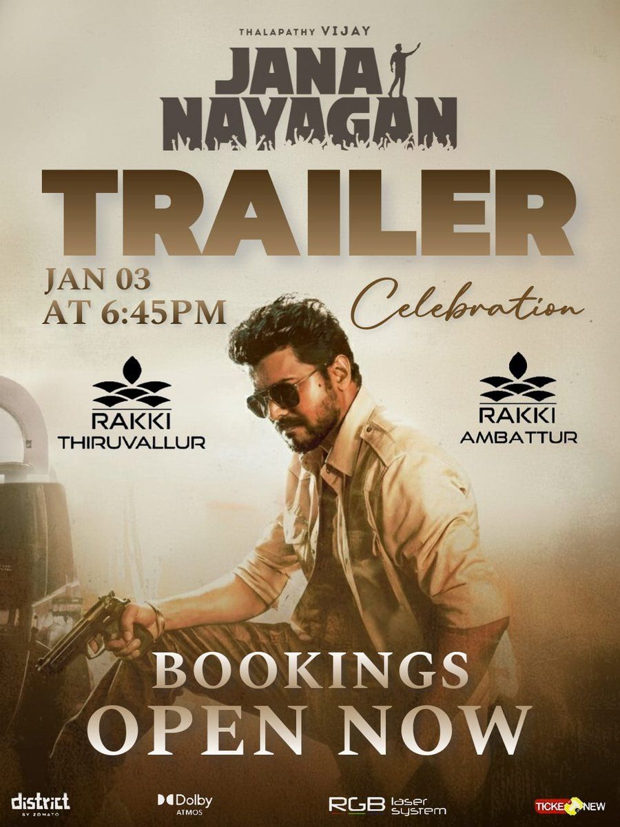 Jana Nayagan (2026), Action Drama Political released in Tamil Telugu language in theatre near you in Chennai.