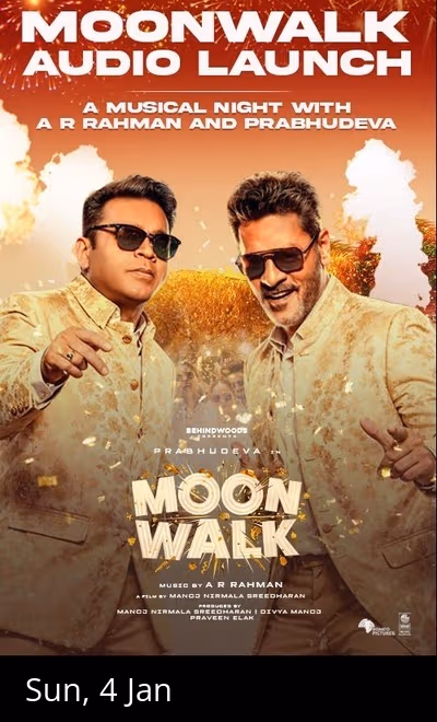 Chennai: Tickets are now available for the highly anticipated Moonwalk Grand Audio Launch, featuring legendary composer A. R. Rahman and iconic dancer-choreographer Prabhudeva. The grand musical celebration is scheduled to take place on Sunday, 4 January 2026, at the Sathyabama Institute of Science and Technology, Chennai.