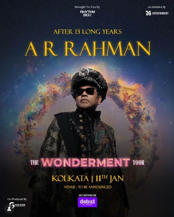 After a 13-year hiatus, A.R. Rahman returns to Kolkata with Wonderment, a flagship experiential concert that blends legacy compositions with next-gen sound, visual tech, and narrative design. Following a successful Mumbai premiere and a North American run (July–August 2025), the tour scales back to India as a high-impact cultural showcase in January 2026.